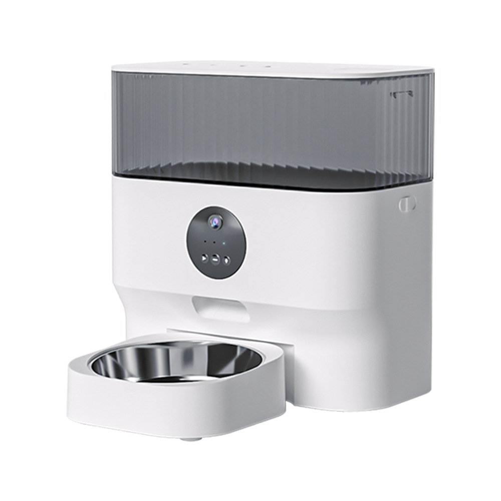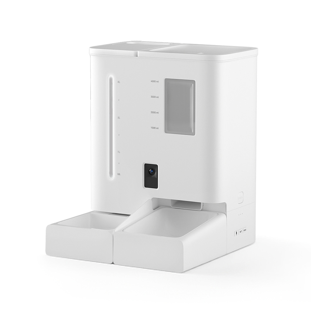 Automatic pet feeder with automatic food dispensing, double bowls, semi-transparent cat and dog food.