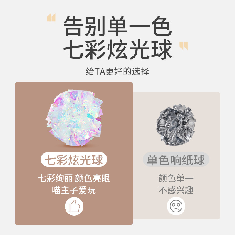 Cat toy, colorful squeaky paper ball, chewable kitten teaser, pet self-entertainment and entertainment squeaky paper toy set.
