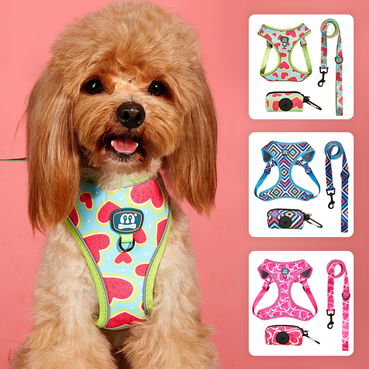 Cross-border BSCI factory pet dog and cat fashion leash harness with reflective strips and adjustable dog harness