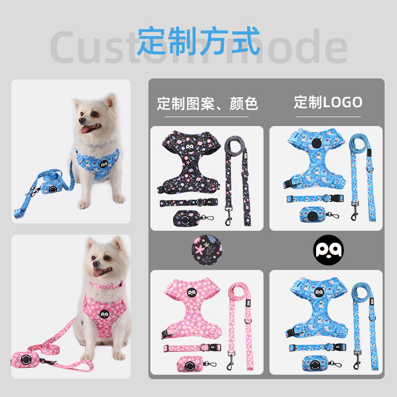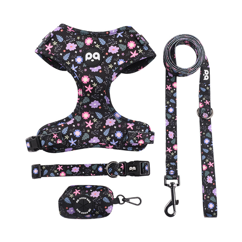 Dog harness collar and leash set with custom printing
