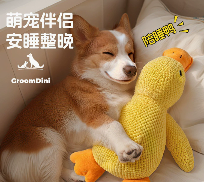 Dog toy, little yellow duck plush toy, self-addictive, durable, teething, and makes sounds; small to medium-sized dog pet toy.