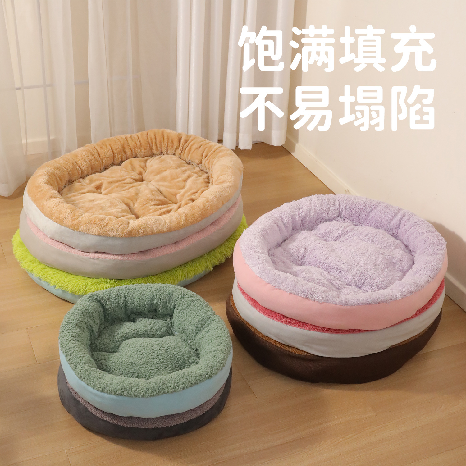 Extra-large dog bed, oval cat bed, large dog winter warm pet bed with thick plush mattress.