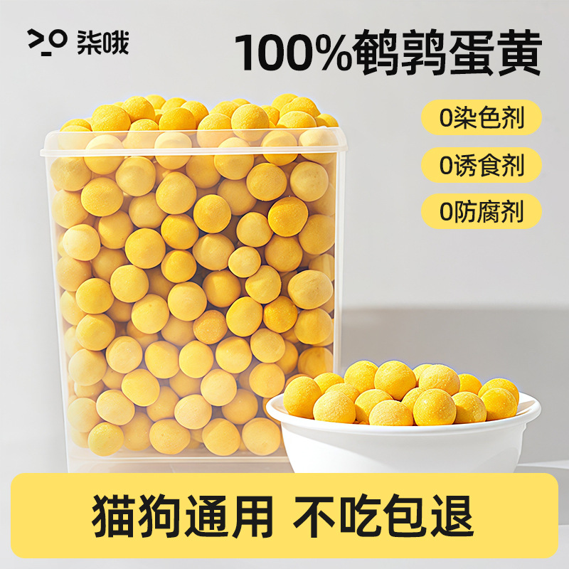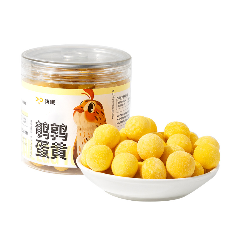 Freeze-dried quail egg yolks for pets, a training reward for cats and dogs, lecithin cat treats, and nutritional supplements for kittens and puppies.