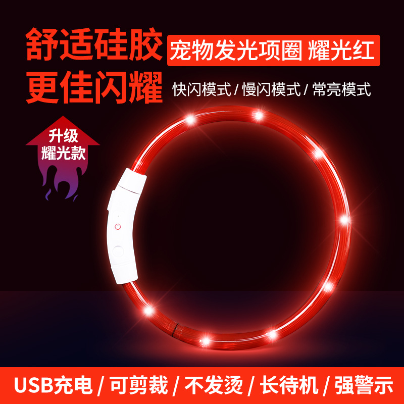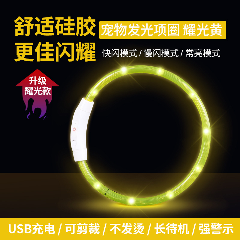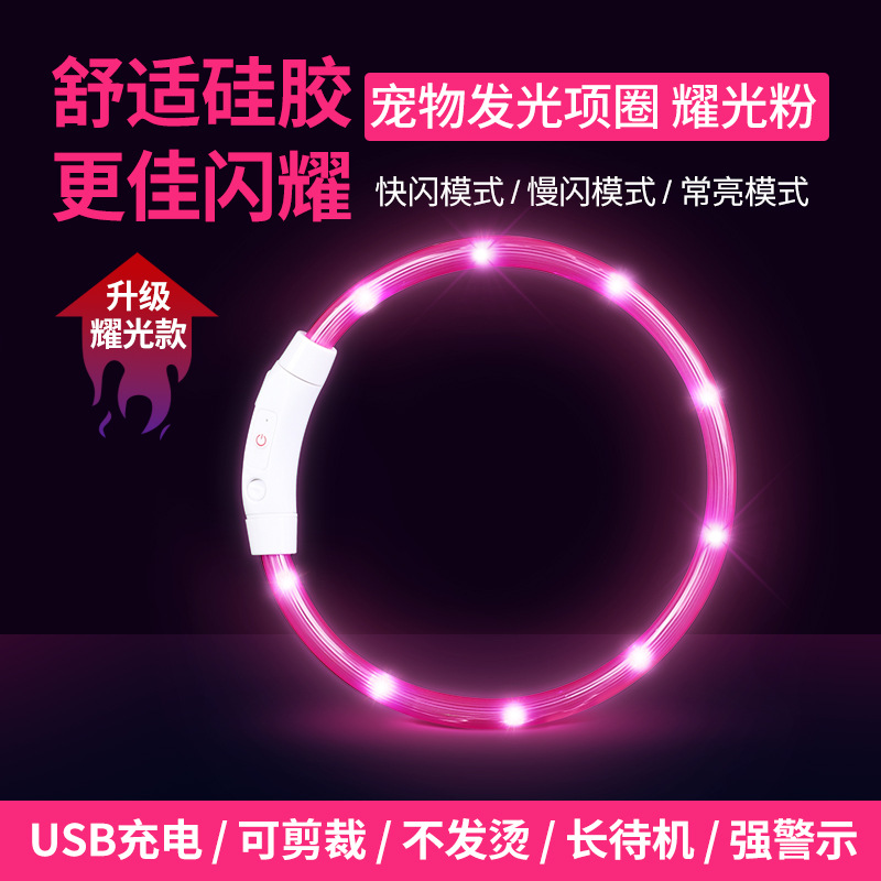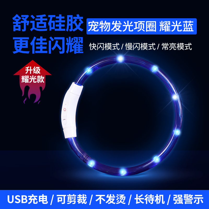LED light-up collar for dogs and cats, rechargeable and glowing, suitable for nighttime use.