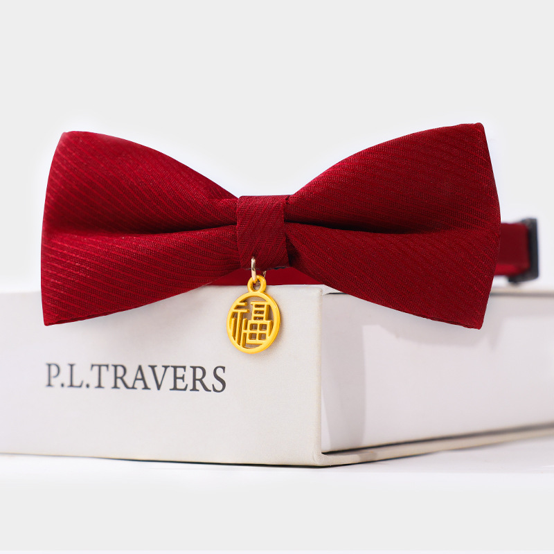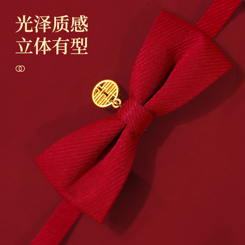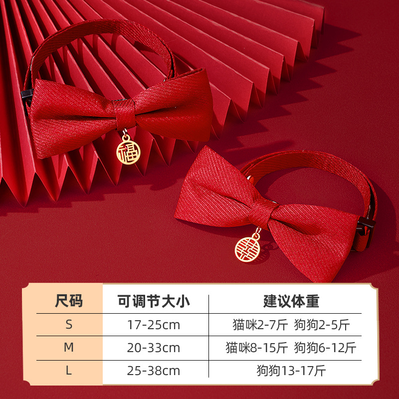 Pet bow tie, wedding double happiness symbol, cat and dog neck ornament, photo bow, red festive fabric neck collar