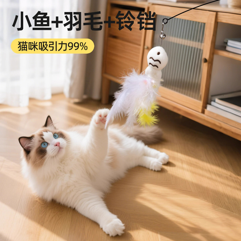 Pet cat teaser, kitten fishing cat teaser, cat toy with bell and wire.