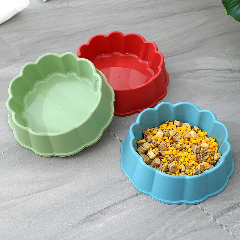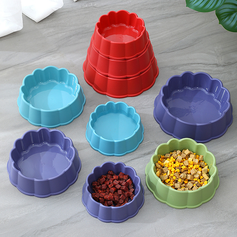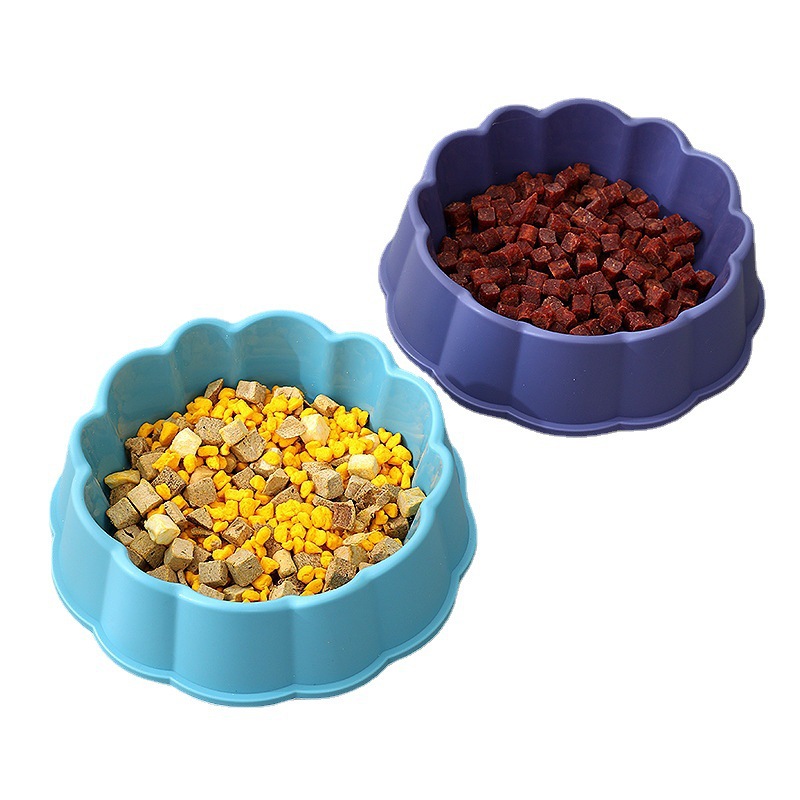 Pet food bowl, frosted lace edge, single plastic dog food bowl