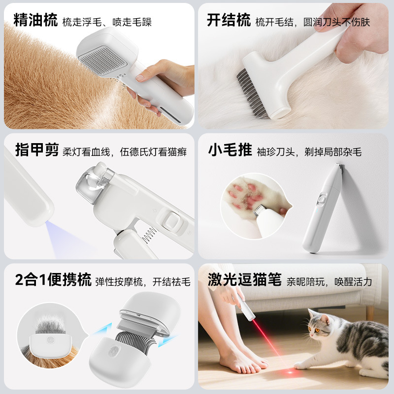 Pet grooming kit, cat oil comb, detangling comb, nail clippers, electric hair trimmer, laser pointer