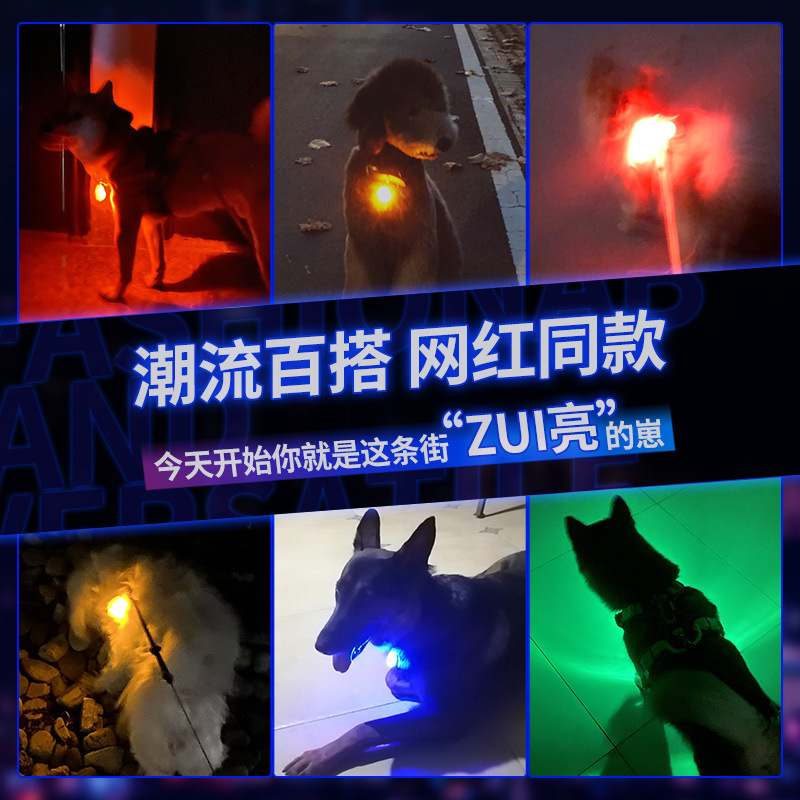 Pet LED luminous pendant, dog tag, glow-in-the-dark anti-loss light, large, medium and small dog flashing collar pendant