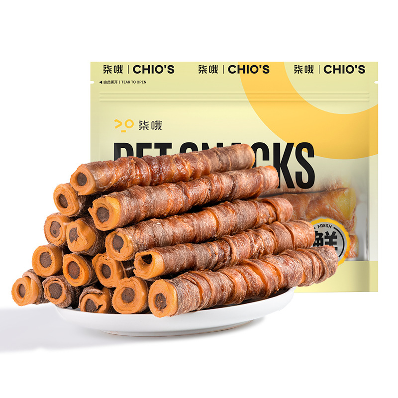 Qi’o Dog Duck Meat Wrapped in Leather Dental Cudgel, Air-dried Leather Roll with Filling, Chicken Jerky, Pet Dog Snacks
