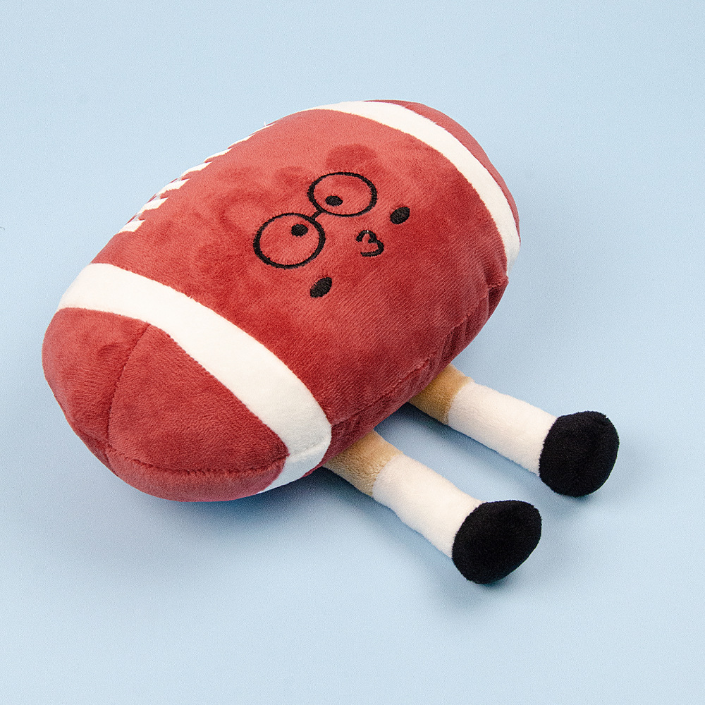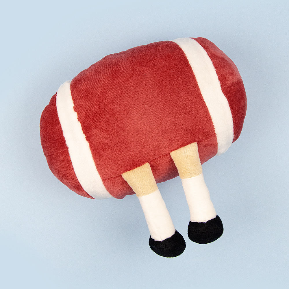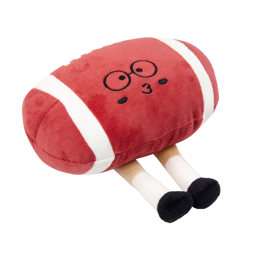 Realistic plush interactive rugby ball toy that squeaks, entertains, and is durable enough to bite.