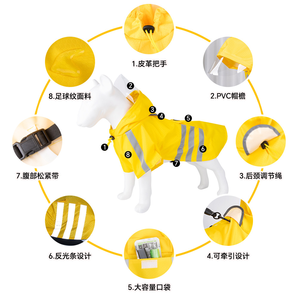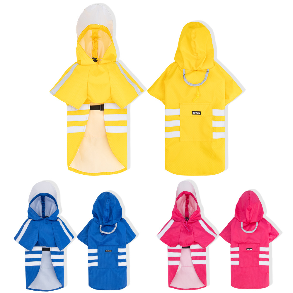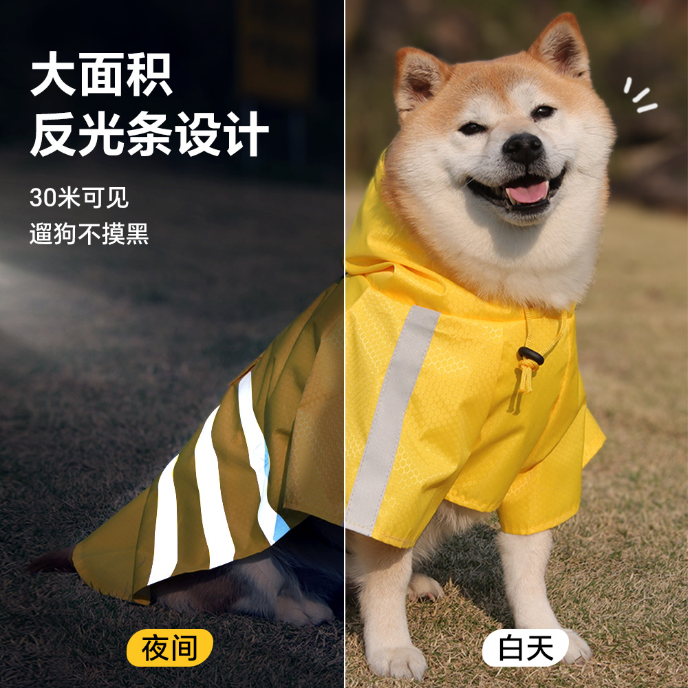 Reflective raincoat for pets, two-legged raincoat for pets, windproof and rainproof, hooded waterproof raincoat for dogs.