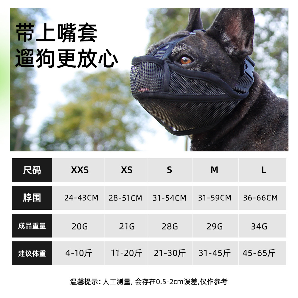 Short muzzle for dogs to prevent barking, biting, and accidental ingestion; breathable muzzle for bulldogs.